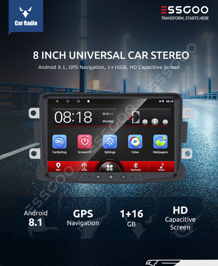 QUAD-Core Android Renault Duster Autoradio 8.1 Auto MP5 GPS Player, Phonelink, Bluetooth, HD FM Funktion, schnelles WLAN