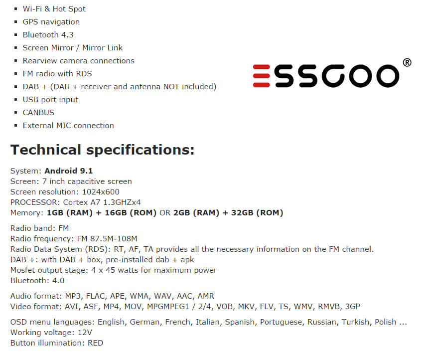 The decisive advantage Of ESSGOO AR7002 Car Multimedia